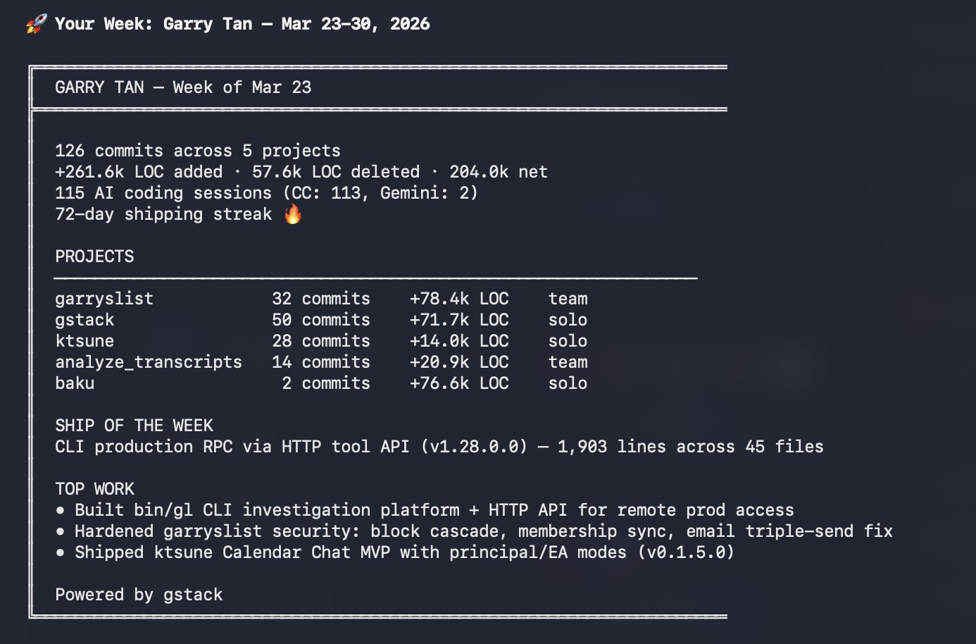 This is the part I would genuinely want Garry's view on. How much confidence does he actually have in those lines of code? His "email triple-send fix" is an example that I'd imagine a code review process would flag?